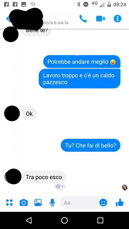 Questa storia me l'ha raccontata G e le chiesi il motivo del rifiuto,lei mi rispose<<l?ma vaa hahaha ma è brutto e peloso non scherzare dai hahaha>>,<<poi dai mi scrive sempre,io sinceramente ho paura secondo me mi stalkera>>fosse stato un belloccio non avrebbe vuto problemi,volevo dirle sul momento che dalla sua situazione non si doveva permettere di sminuire un ragazzo che ha un valore più alto del suo solo perché lei ha la figa ma sono stato zitto,per tutta la serata mentre lui non c'era lo pigliava per il culo con le altre amiche dicendo di non dire a nessuno di cosa lui voleva fare con lei,ma in realtà mentre lo diceva quasi urlava per farsi sentire da più persone nel bar.