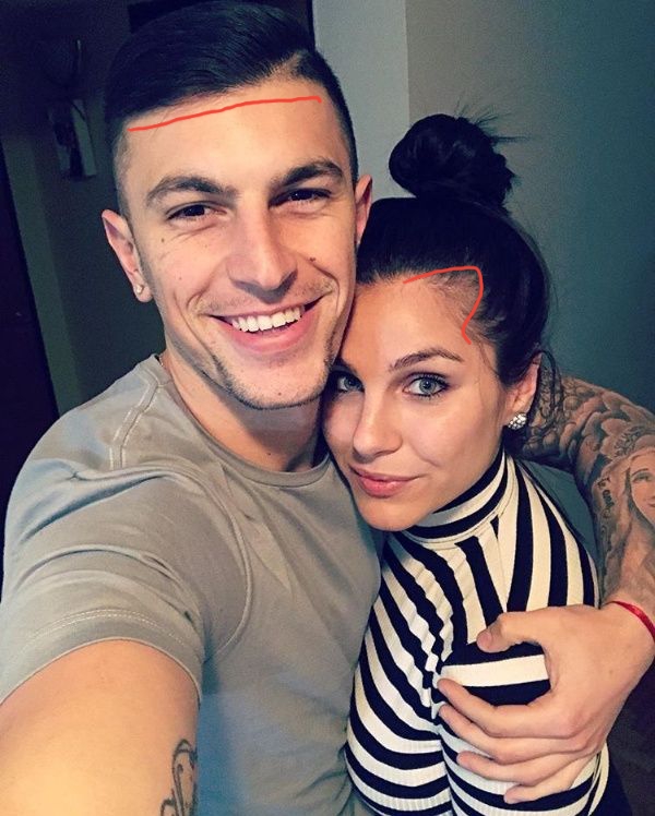 lei ha l'attaccatura più alta, ma nn è dovuta all'aga. |