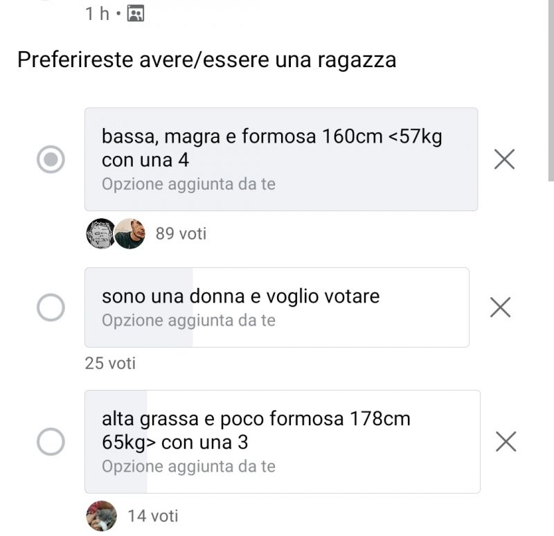 Nessuno ti darà mai di nano da giardino o simili. Nessuna ti dirà mai non mi piaci perché sei basso. Poi se ti scansano ugualmente ci saranno altre problematiche, ma il primo step oddio non ha un’altezza da donna lo superi |