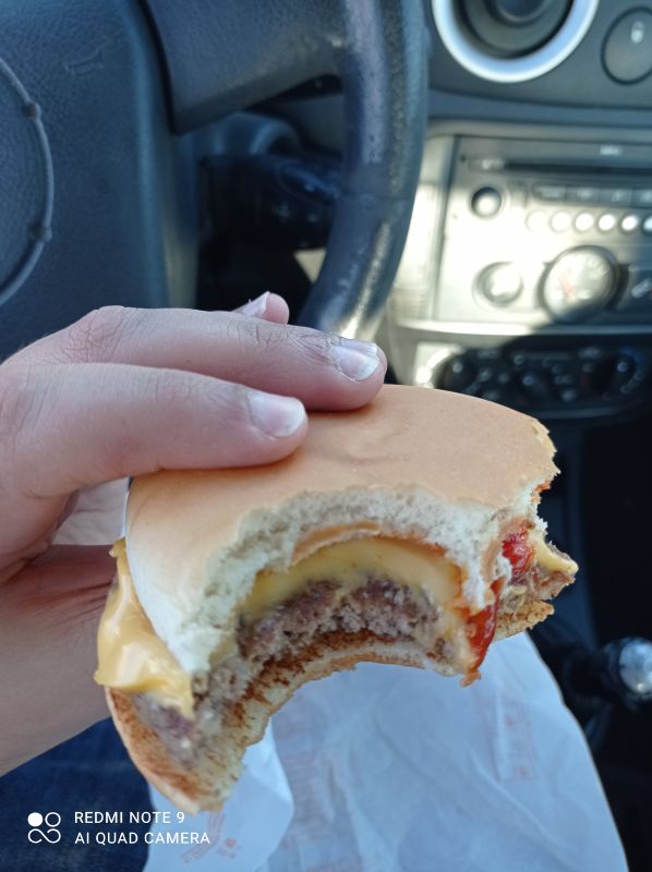 (IMG:https://upload.forumfree.net/i/ff13162340/...0608_184536.jpg) Oggi ho optato per il McDonald's, veramente triste, naturalmente da solo a mangiare questo fottuto panino in una macchina scassata Il panino mozzicato su sfondo di volante consumato è veramente arte |