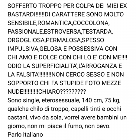 Lei è molto attraente Lei è decente e molto porca Nn rompe i coglioni È matura indipendentemente dall'età È automunita Lavora I genitori sono normali di testa Divide le spese Insomma avere la donna è come avere un buon lavoro Se hai un lavoro di merda dove lavori come uno stagionale 7su7 12 ore al giorno è meglio nn averlo |