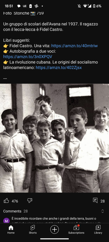 Sempre tra i migliori se non il migliore tra elementari, medie e superiori. Non che fossi un genio....nel senso....i miei risultati me li sono sempre abbastanza sudati perché studiavo. Sono sempre stato molto responsabile. Ma comunque, a partire dall'università - sono laureato - (a parte forse l'inizio) ho cominciato ad avere delle difficoltà, credo legate anche e soprattutto a problemi un po' esistenziali e credo di insoddisfazione. La condizione incel dell'epoca era venuta fuori incidendo negativamente anche sulla resa scolastica e della vita in genere. Pur se poi dai 24 anni, come molti qui sanno, ho dato un po' una svolta alle cose con l'altro sesso. Comunque la situazione nel suo complesso è un po' difficile da spiegare in poche righe....e forse anche in tante 😅 Fidel Castro assomiglia un po' a me da bambino/ragazzino....😱 |