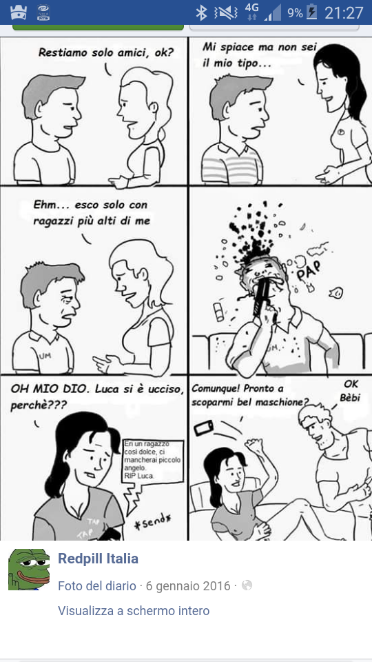 è statisticamente impossibile che un brutto trovi amore ricambiato; ci si innamora di poche persone nel corso della vita e tutte decenti esteticamente in quanto l'amore è impatto visivo perlopiù, ergo ci vede benissimo (il detto 'l'amore è cieco' è un enorme cazzata bluepilled) ci si innamora dei lineamenti del viso e dello sguardo perlopiù, tutto il resto (movenze, carattere, voce, gesti) fanno tuttalpiù da cassa di risonanza, cioè amplificano la sensazione dettata dall'estetica del viso l'amore in buona sostanza è solo per i 7 in su, a volte per i normaloidi, ma per gli altri è accomodamento, accontentarsi per non restare soli; le coppie di bruttini/brutti che si dichiarano 'innamorate' mentono spudoratamente |