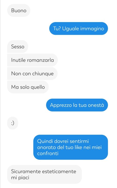 Questa qui mi ha detto che cerca solo sesso ma non mi torna, non è che le dico di incontrarci e poi mi ricatta chiedendomi soldi? In genere quando pro/semi pro lo mettono in chiaro prima o al massimo dopo averti dato un assaggio. E il body count alto (>0)no, e se un po' zoccola dopo ti tradisce quindi no, se vi dice che vuol solo sesso c'è qualcosa sotto. Ve le inventate tutte pur di non trombare. Mi sembra lecito essere dubbiosi, alle favole ho smesso di credere da tempo |