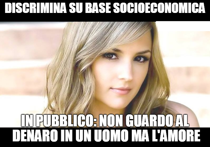 | Si ma con lui si parla anche di modelle russe secondo me, che vanno con lui più per il suo status che per i soldi che può offrire.. Secondo me c'è una maggiore soddisfazione se una ti viene dietro per la tua importanza, che perché la paghi ( ma tanto questi sono solo mezzi per trombare,come la bellezza,del resto) |