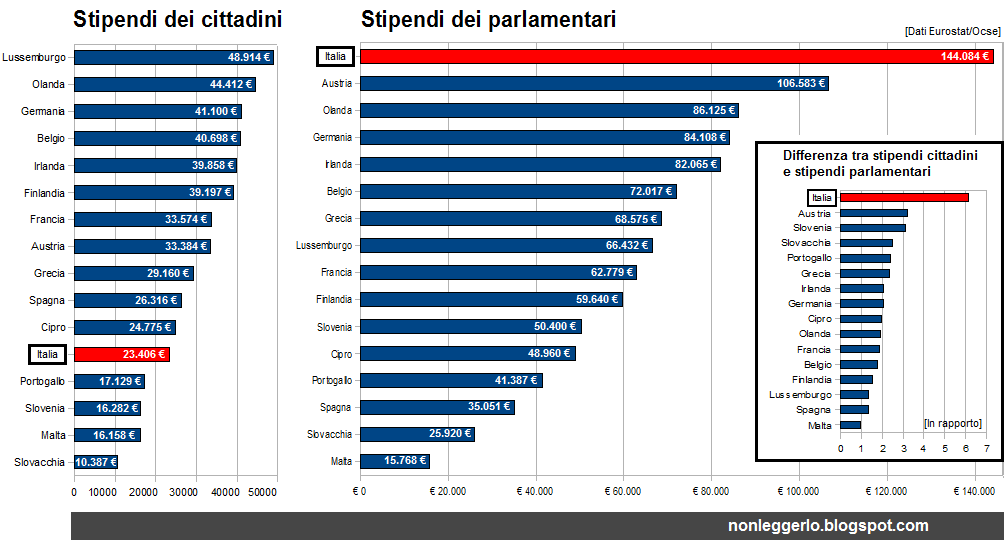 Sì sì, poi quella di voler dare uno stipendio di 2000 euro al mese ai parlamentari è un'altra delle belle..In pratica gli amministratori di certe aziende vengono pagati anche centinaia di migliaia di euro l'anno, mentre uno dovrebbe mettersi a lavorare per mandare avanti lo Stato italiano per uno stipendio di poco superiore a quello di un impiegato. http://4.bp.blogspot.com/-gXk-0FOg5LY/T8Hk...cittadini+2.png http://3.bp.blogspot.com/--yTXQsDy1l4/TwMc...nonleggerlo.png Il paese va avanti una meraviglia, soldi sicuramente meritati. Il problema è proprio questo, bisognerebbe pagare in base alle prestazioni, niente stipendi standard. |