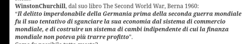 Fossero solo i partiti comunisti... la rivoluzione russa fu finanziata da pezzi grossi della finanza internazionale. Stesso discorso per Hitler, solo che a un certo punto era diventato troppo scomodo. guarda la dietrologia sulla rivoluzione russa la conosco ed è tutto un gigantesco viaggione (supportato da ben pochi fatti) per arrivare dire che ci sono gli ebrei turbomassonimondialisti che vogliono conquistare il mondo... ma poi indipendentemente da "chi ha finanziato chi" mi pare che in russia sia successa una cosa, in germania un'altra. Il fatto che le megabanche americane abbiano finanziato i russi non cambia niente, pensare che lenin facesse gli interessi dei banchieri è da decerebrati. Qui siamo alla paranoia del complotto, siete quelli che si schierano coi cattivi della storia immaginando come sarebbe più figa la vostra vita se avessero vinto loro (e di conseguenza i veri cattivi sono quegli altri) e giù di autoconferme e teorie strampalate. La psicanalisi non aiuterà un incel a scopare ma io comunque fossi in voi farei un tentativo. |