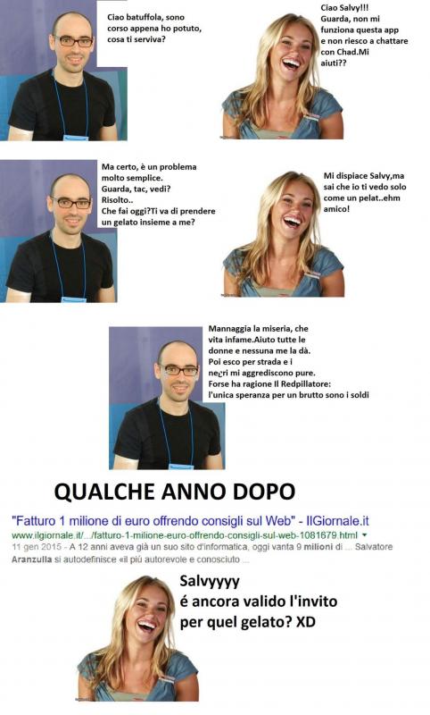 Pare che il nostro amato Aranzulla si sia fidanzato con una certa Sabrina. www.huffingtonpost.it/life/2022/08...nzulla-9979712/ L'intervista completa sul Corriere (per eludere il paywall basta disattivare il Javascript) www.corriere.it/cronache/i-miti-de...e15ee3b43.shtml Qualche estratto interessante: CITAZIONE All’allestimento del suo attico nell’esclusiva cittadella di Citylife, a Milano, ha dato perciò «massima importanza»: «cinquanta punti luce», domotica da centomila euro, bottoni d’allarme in ogni stanza in memoria forse di vecchi attacchi di panico; un impianto che «cambia l’80% dell’aria ogni ora», guardie armate in giardino, uno scaffale di manga e sei di manuali di alta pasticceria, il suo hobby più longevo. Il più recente è la palestra: «Ho il 13% di massa grassa, sto lavorando per scendere a 12. Perfetti si è a 8%, ma alcune funzioni fisiche sono a rischio. Segno su una app le calorie», una volta monitorava anche l’alvo. Perché gli importa tanto? «Non mi piace lasciare andare le cose». CITAZIONE Intervistatore: «E come dorme?» Aranzulla: «Male. Basta un pensiero o uno spiraglio di luce e non prendo sonno. Sabrina, la mia compagna, stanotte è entrata a letto con lo smartphone. L’avrei strozzata. A volte mi chiede se può abbracciarmi: amore, le dico, mi abbracci domani, devo dormire». CITAZIONE Intervistatore: «Perché gli attacchi di panico?» Aranzulla: «In palestra sono svenuto sotto un bilanciere da cento chili. Potevo morire. Di lì ho iniziato a soffrirne. Ne ho parlato in una seduta, e ho avuto un attacco anche lì. La terapeuta non sapeva che fare. Mi aiutò Sabrina, che venne a prendermi». Intervistatore: «Come è nata la vostra storia?» Aranzulla: «Nel 2018, a pranzo con una mia collaboratrice, Irene, sua amica. Sabrina stava attaccata al cellulare. Da quello di Irene le ho scritto: basta chattare! E le ho lasciato il mio numero. Al primo appuntamento ci siamo trovati estremamente antipatici. Lei lavora in banca, è una concreta: diceva che l’economia digitale è inconsistente, che non capiva come potesse generare valore. A me, capito?» Proprio mentre parliamo di lei, in cucina entra Sabrina, classe 1990 come Aranzulla, bancaria a un esame dalla laurea in Economia. Minuta, capelli dorati, occhi blu scuro. Mai vista perché sui social di Salvatore, di comune accordo, non compare mai. «Io non ce l’ho neppure, Instagram», sorride. «Non vorrei che la nostra storia diventando pubblica cambiasse. Stiamo tanto bene così. Prima, di Salvo sapevo solo che era il capo di Irene». Comunque quando ho scoperto che Aranzulla è mio coetaneo ho pensato subito "ammazza, quanto se li porta male quei 32 anni!" Ah, e ovviamente la stronzata del giorno, che lo fa dipingere come un pallone gonfiato: CITAZIONE E se avrete un figlio? «Non dormirà con me. Mi spiace, ma devo dormire. Senta, io oggi ho da programmare quindicimila righe di codice per il sito. Se fai un errore nella terza, le altre dopo sono da buttare. Ci va precisione. Se non dormi non ce l’hai». Da sviluppatore/programmatore nel settore da quasi 10 anni, questa è una boiata vera e propria, manco perdo tempo a spiegare il perchè. |
