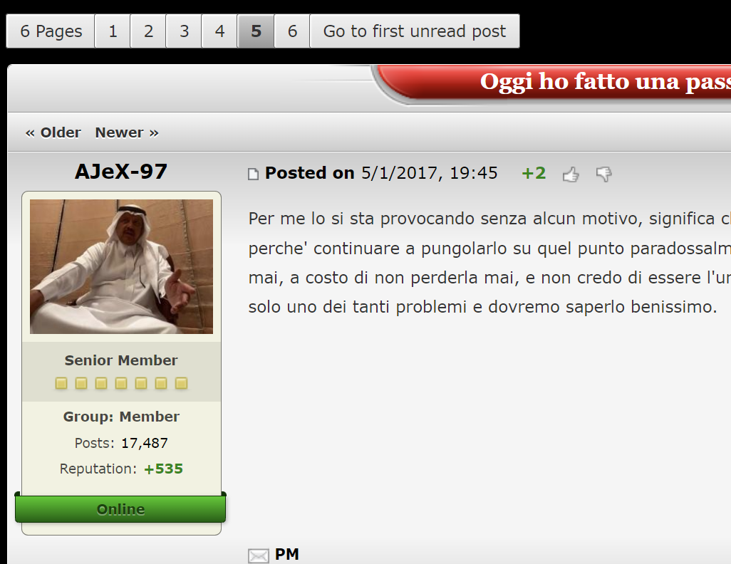 Quel utente bannato con 17k messaggi risulta ora online. Chissà su quale forum starà bazzicando adesso