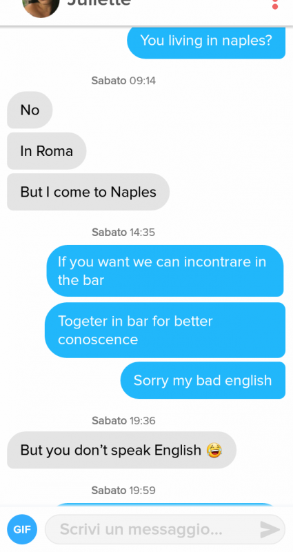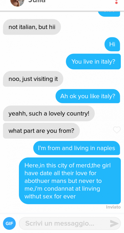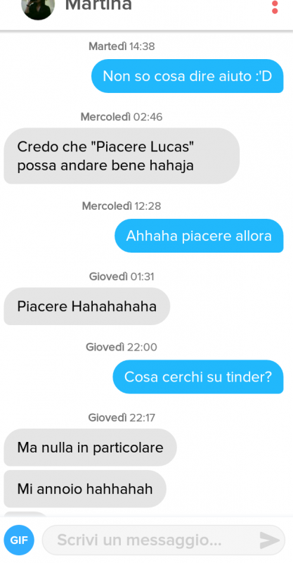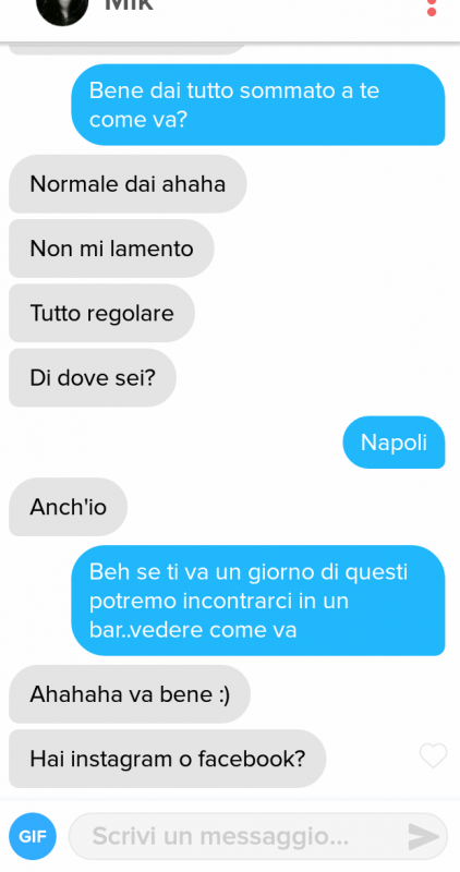| beati voi che trovate divertenti ste cose...io sono sempre più scoraggiato. ho provato tinder per giorni senza rimediare neanche un match, distribuendo like a manica larga |