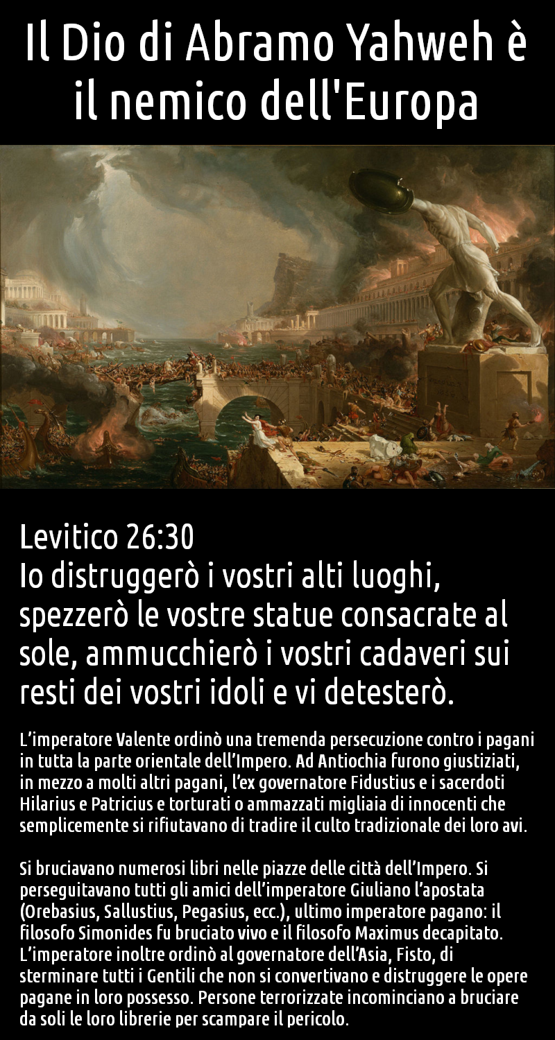 Non é il Dio unico metafisico, ma un dio di carne come tanti ed ha un nome, e lotta contro tutti ed ha iniziato uccidendo pagani e filosofi |