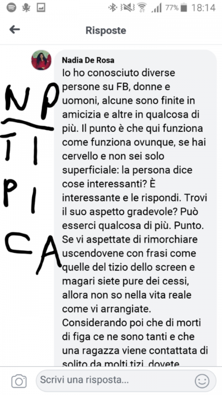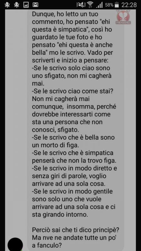 È molto semplice la questione, se contatti una e sei brutto o normale sei un morto di figa, altrimenti no.