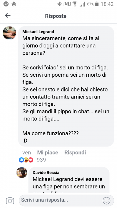 Topic divertente. Spero che continuerài ad aggiornarlo per gente come me che non ha i social. Mi manca assistere a ste puttanate
