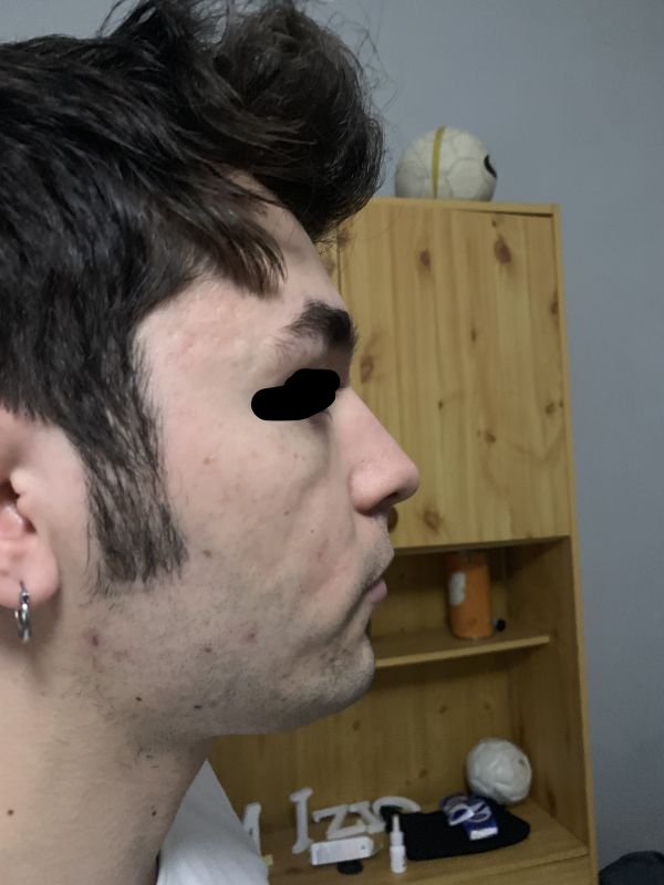 a parte sì, forse è solo grasso facciale quello sotto che ti aumenta di più la linea in basso della mandibola che va al mento, ma, per me staresti meglio con più mentosei più proporzionato