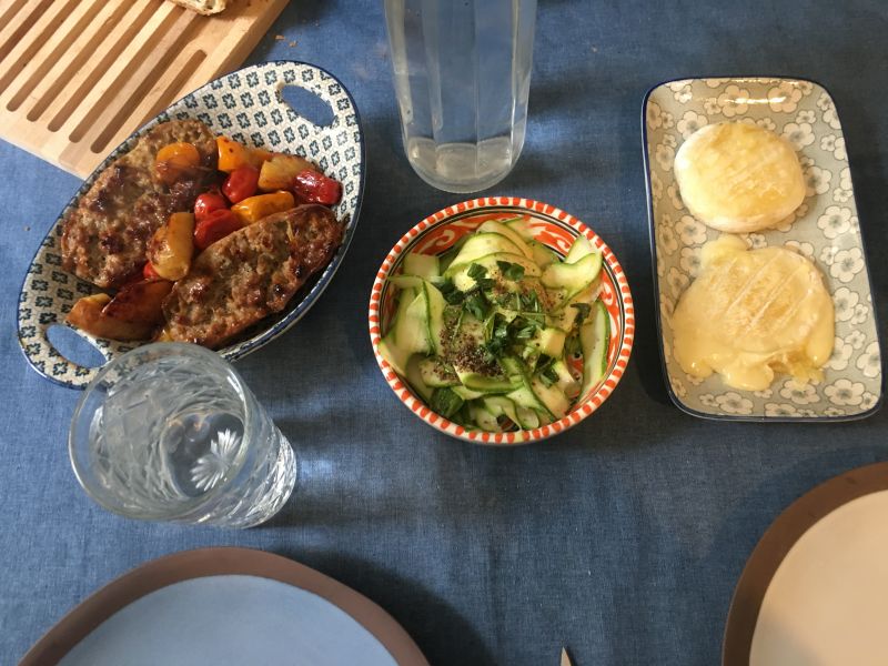 Pranzo: salsicce, patate e datterini rossi/gialli al forno. Tomini arrosto (uno ha ceduto e si è spatasciato). Zucchine marinate (olio, sale, pepe bianco, succo di limone e basilico. Ci stava bene la menta ma non l'avevo!). Le zucchine marinate mi piacciono moltissimo a patto che siano freschissime. Vanno tagliate sottili sottili col pelapatate e messe a marinare in una ciotolina con sale e succo di limone per una ventina di minuti. Subito prima di servire, scolare l'acqua di vegetazione e condire con l'olio, il pepe e qualche erbetta se piace. (IMG:https://upload.forumfree.net/i/ff13133126/IMG_9860.jpg) Sei del Piemonte? Per via del tomino dici? No, li trovo facilmente anche qui a Roma dal mio spacciatore di formaggi di fiducia! ... amara... |