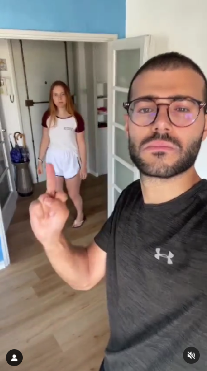 La donna é un maiale che comincia a fare la faccia storta vedendolo rasato, brutta tro!A