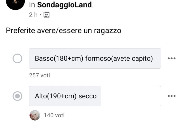 | Ricordiamo che a uomini e donne un belloccio da 8 venne rifiutato da una straccioni a caso perché alto 1.77... |