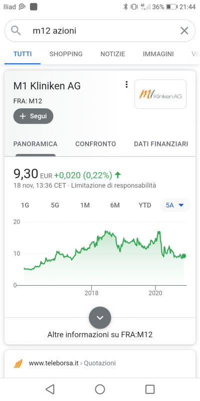 visto che si citano aziende cito PLTR https://en.wikipedia.org/wiki/Palantir_Technologies Come vi sembra? Ovviamente non è un consiglio finanziario M1 Kliniken AG, azienda tedesca che opera nel settore della chirurgia estetica detta così è un po vaga.. cos'è? un centro ospedaliero in cui fanno solo chirurgia estetica? |