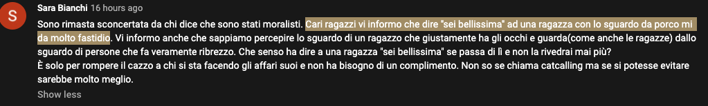 Se il complimento lo fa un brutto sub 6, è molestia e catcalling, sinceramente sono inorridito, in futuro diventerà reato pure guardarle, altro che catcalling!