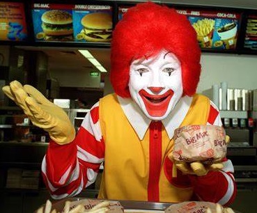 ...e poi c'è Ronald McDonald lo psicopatico, il pagliaccio spilungone smilzo che vuole tutti i bambini obesi.