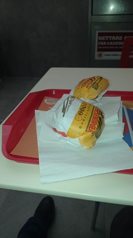 Siccome è molto triste andare già a un fast fois, per giunta un fast food da brutto che è il burger king, ho ordinato due cheeseburger....