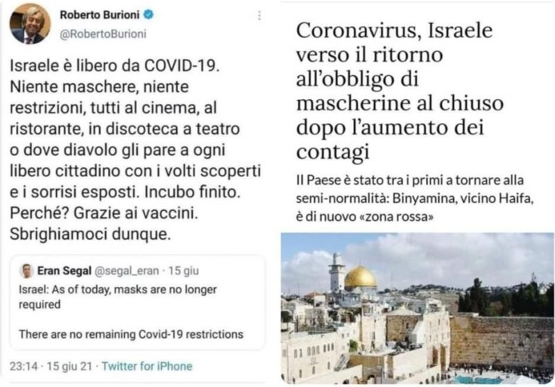 A dir la verità ISS riporta che il tasso di letalita' per chi ha meno di 50 anni è del 1,1%. Quella è la percentuale rispetto al totale dei morti. La letalità è il rapporto tra morti e tamponi positivi. Che è comunque sovrastimata perché 1) i tamponi positivi sono un sottoinsieme di chi si è infettato e 2) (e mi voglio tenere largo) dei morti forse uno su 10 a quell'età è veramente morto a causa del covid e non di altro essendo positivo al tampone (poi potremmo discutere dei falsi positivi e di cosa effettivamente rappresenta una positività a un tampone con i numeri di cicli PCR che fanno) Se vai a fare i conti come si deve e magari ti fai qualche domanda su gente di 40/50 anni in perfetta salute che dopo il vaccino crepa da un giorno all'altro col cervello devastato di trombi vedi che già oggi i morti da vaccino sono molti ma molti di più di quelli da covid come minimo fino ai 50 anni (ma non mi stupirebbe pure oltre) Questo è un altro discorso, ognuno è libero di fare di sé quello che preferisce, io infatti mica dico un cazzo agli altri, fate come vi pare sparatevi pure la candeggina in vena se vi va Non ho ben capito però sta moda di pretendere di poter decidere del culo degli altri |