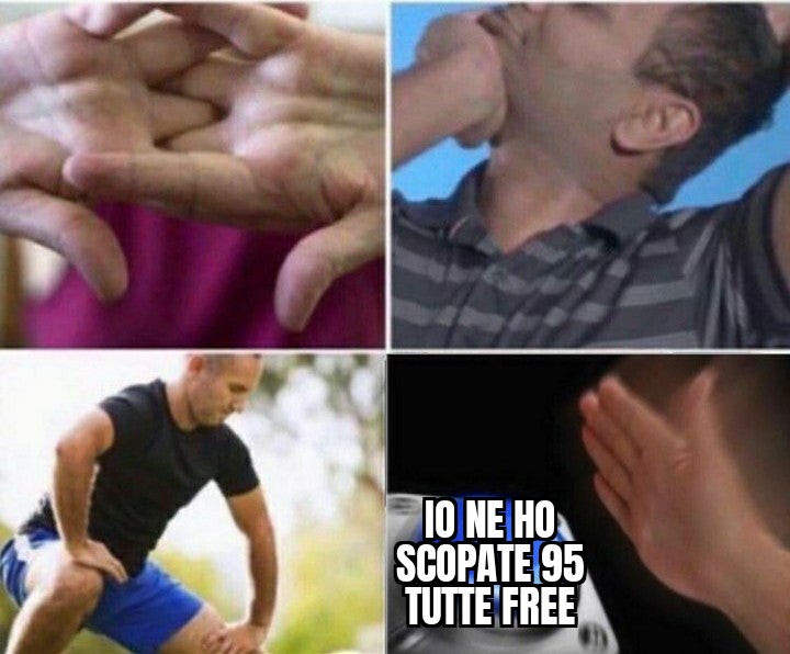 38 anni, 3 np, una CO per sverginarmi all età di 24 anni, poi la mia ex che iniziava a stare sul 5 e la mia ultima ex che soggettivamente per me era una dea, oggettivamente era una 6.5 POI in realtà c'è ne sarebbe anche un altra, ma non so per quale.motivo psicologico, non riesco a ricordare se ci sono andato a letto, nonostante e stata 7na mia ragazza ufficiale Edited by danny.trejo - 15/12/2021, 13:33 |