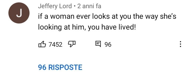 C'è una 6,89 che oggi mi ha scritto 3 volte e inviato foto, io gli ho risposto solo nel pomeriggio, abbiamo parlato un po e poi è sparita all'improvviso. Fa sempre così e sono sicuro che non gliene freghi assolutamente un cazzo di me, però siccome la ignoro, lei vuole attirare la mia attenzione a tutti i costi e una volta che ci riesce ha vinto la sfida e torna a farsi i cazzi suoi. Tutto questo per dire che tutte le puttanate che ci diciamo tra di noi sulle chat e sul rimorchio non contano un cazzo Questa è la sola cosa che conta, una che non ti ha mai visto che ti fissa in questo modo https://m.youtube.com/watch?v=XnMrUxcIHlo Ma cristo santo... invece di pensare agli sguardi invidiosi che il chad riceve, se ti ricontatta invitala e basta, no? Noi non siamo come lui, facciamocene una ragione. Se non ti risponde o rifiuta cancelli il numero senza dirle una sola parola da buon stoico quale sei, ti sei tolto un peso e vaffanculo. No è questo il punto. A che serve svenarsi, questa lo capisco già dai modi che non tiene a me. Basta che passa un chad qualsiasi che le np lo guardano in questo modo. Noi non possiamo oltrepassare le colonne d'Ercole quella è zona off limit per chad |