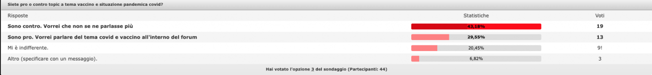 In questo sondaggio https://ilforumdeibrutti.forumfree.it/?t=78914531 la maggioranza ho votato per l'eliminazione dei post sui vaccini e greenpass, quindi presumo che l'admin si sia limitato a rispettare quella "volontà popolare". Ecco perchè sono spariti i post su quei temi. Io ho votato <<mi è indifferente.>> ![]() Devono fare i botti tutti quanti. In primis i merdoni debunker, che sono tutti atei. Con tutte le bugie consapevoli che dicono gli conviene pensare che Dio non esista. Poveri loro Aridaje con gli auguri di morte. |