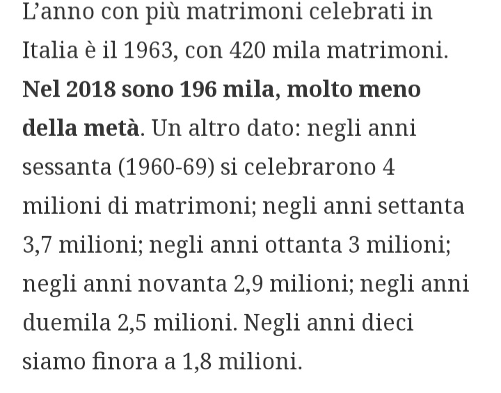 Ti dirò di più , spesso è la ragazza ad OBBLIGARE il fidanzato a fare gesti plateali, per far rosicare le amiche. Un mio amico che si è sposato ha dovuto fare una serenata in mezzo ad un paesello del cazzo. Curioso, in quale parte della penisola. Io ho avuto decine di amici che si sono sposati ma sta sceneggiata mai vista. Se una gia' inizia ad obbligarti - uso tue parole - ad umiliarti in pubblico, la vedo male, molto male, per il tuo amico. Amici del profondo sud. Attenzione non ho detto obbligato in questo caso (parlavo di obbligare in generale). Però la richiesta è partita dalla sposa, quindi non una cosa spontanea. Poi a lui essendo neurotipico sarà pesato il giusto ma non da preoccuparsi più di tanto. |