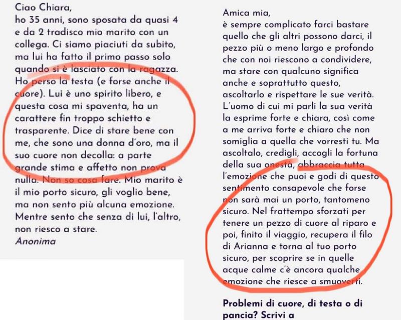 Trova interessante l’ex perché è un uomo top 20. Smettiamola di dire cazzate. Top 20? Che è, una classifica delle hit radiofoniche? Sono una donna, so cosa scatta nelle nostre teste (o almeno, ciò che è normale scatti fino ai 27/28 al max, passata quell'età bisognerebbe anche iniziare a crescere un po'). Se lasci uno inconsciamente speri che questo qui rimanga a zerbinarti e a struggersi nel dolore vita natural durante così da egoboostarti, se alal fine si stanca di starti dietro e si mette con qualcun'altra ti girano un po' i coglioni perché lo vedi come un affronto personale, per la serie "ma come, non soffri in eterno per me? Allora per te contavo poco e niente". Questa sensazione normalmente dovrebbe durare una settimana, max un mese, se dura 20 anni vuol dire che lei qualche problemino nell'elaborare uno smacco ce lo ha. Si è rovinata la gioventù per un capriccio dettato dalla sua stessa prepotenza: dopo aver mollato un ragazzo che evidentemente non amava più, lui ha "osato" andare avanti e fare la sua vita e lei, invece di fare altrettanto, si è presa una fissazione assolutamente malata e deleteria per quest'uomo. Il fatto che nel frammezzo abbia avuto una relazione finita male non ha aiutato, invece di guardare avanti si è guardata ancora di più indietro, sbagliatissimo. Era una storia iniziata da ragazzini e come molte storie che iniziano a quell'età è finita, basta. Si cresce, si cambia e la vita va avanti, altrimenti gli anni passano e ci si rovina l'esistenza con le proprie mani. Quante cazzate Ti riempi la bocca di amore quando le np odierne ne sono completamente incapaci È un loro difetto tipico Il potere sessuale e l’esperienza in termini di cazzi odierna sembra che per loro sostituisca una laurea in psicologia Che sogno se avessero un punto di IQ per ogni cazzo preso |