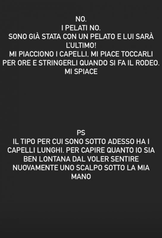 Più che altro neghi a loro un piacere… hanno voglia di giocare con i capelli, tirarli e passarci le mani, spettinarti. Se non possono farlo non sono felici ed è un nostro dovere civico e morale renderle felici. Quindi sì, i pelati vanno eliminati per il bene delle nostre principesse elette. |