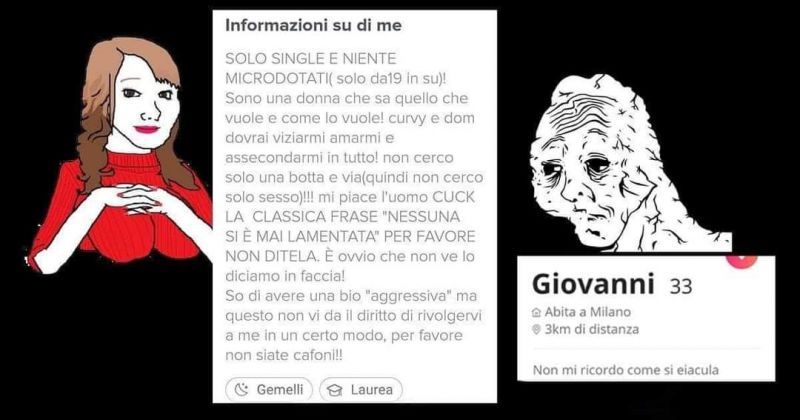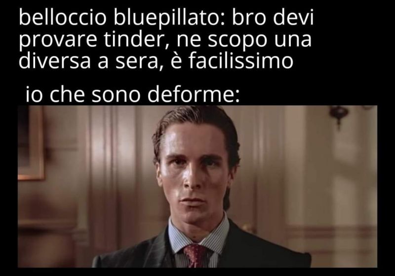 Sono app mangiasoldi, pure se sei esteticamente piacente ti devi accontentare di ipogamare pesantemente o spendere una fracca di soldi solo nella speranza di beccare una ragazzetta un minimo decente e che non sia disturbata mentalmente, il gioco non vale assolutamente la candela, girate a largo che è meglio e diffidate da chi millanta risultati mirabolanti, son come quelli che ti dicono che dal Casinò escono sempre vincitori. A dirla tutta io avevo pure un'idea per un'app e cercavo qualcuno che sapesse come programmare. Poi con OnlyFans e' successo l'impensabile (per me). Magari fossi riuscito a realizzarla e vederla a Match (di fatto monopolista) e farci la grana per le fighe vere. |