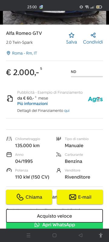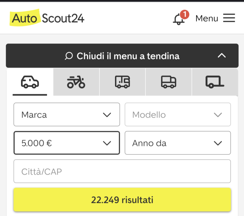 tipo ero andato per curiosità su autohero (non che mi serva una macchina usata, era proprio curiosità di vedere i prezzi) e... zero auto sotto i 5k ! oh ? ma sono diventati tutti ricchi gli italiani ? prima su autoscout ecc. mi ricordo che certi catorci li vendevano pure 1000 euro (ovviamente merda, ma marciante, tipo la punto del 1996 e cagate simili) meno di 5k un'auto usata è una rarità , io non me lo spiego con tutti i morti di fame che ci stanno, avete notato pure voi questa anomalia ? |