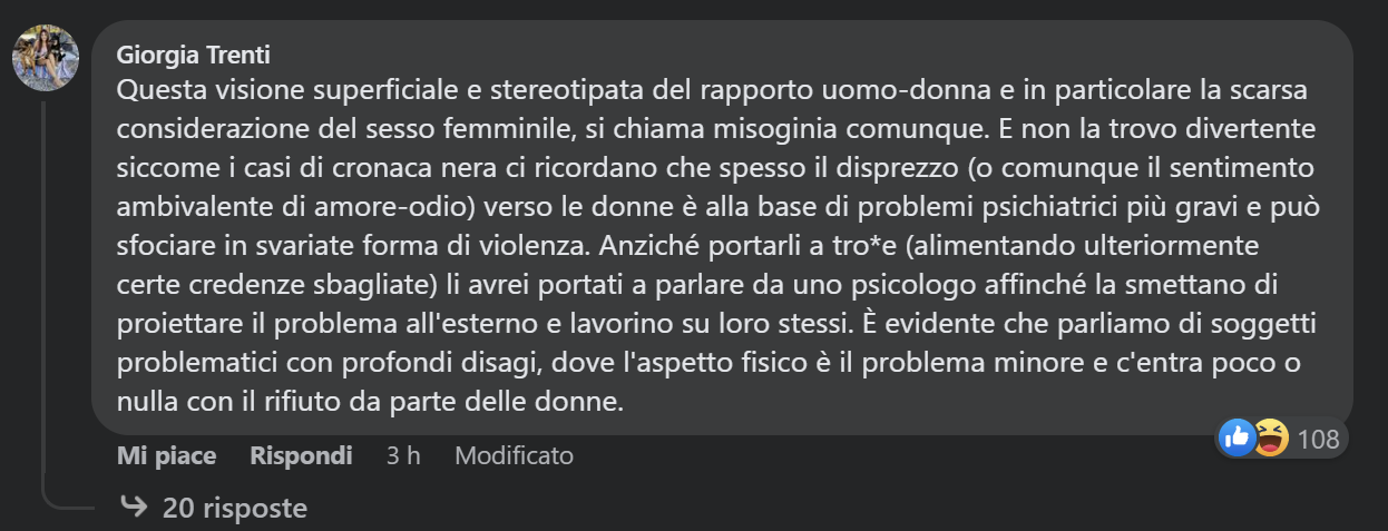 Su Instagram leggo un sacco di commenti redpillati, su post in cui le donne dimostrano la loro iper pretenziosità e la loro troiaggine.
