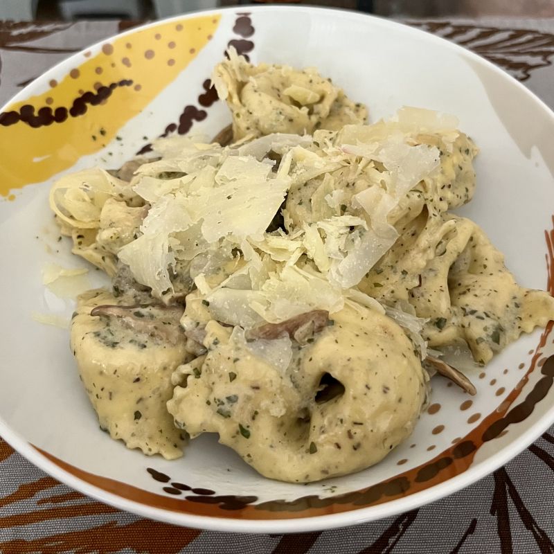 Agnolotti di carne con porcini e raspadura |