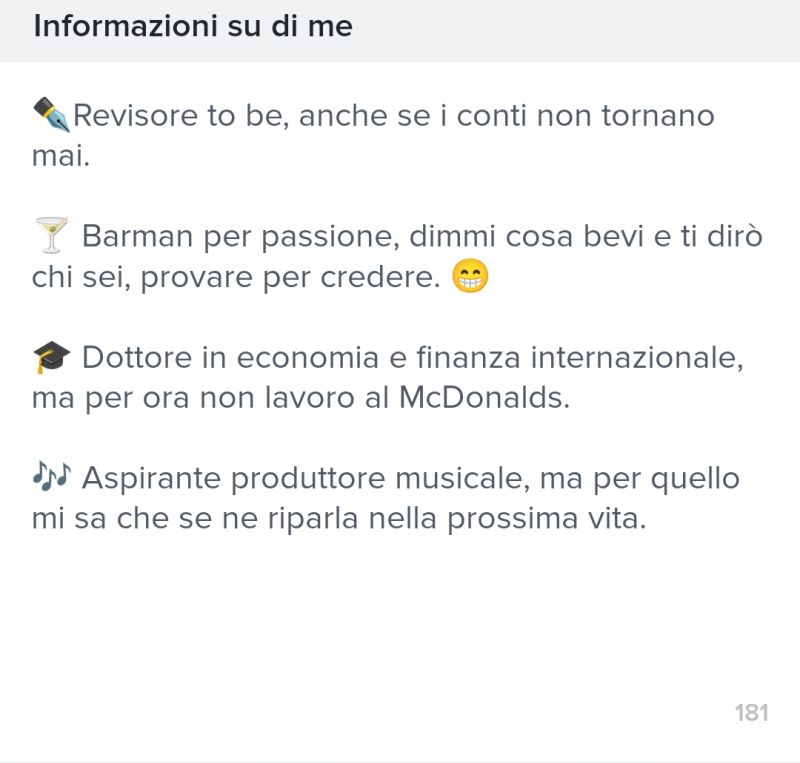 Hai visto? Un commento da asintomatico e sei già diventato un pua esperto, gran preparazione tecnica questi pua che attraverso le loro nozioni di psicologia applicata, rubano le tipe a tutti i chads che sono disperati non riuscendo a trovare più nulla, ora tocca prepararsi altri anni e anni di studi per capire come evitare il ghosting diretto |