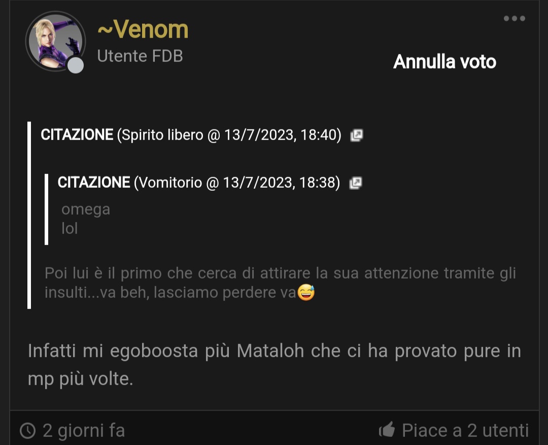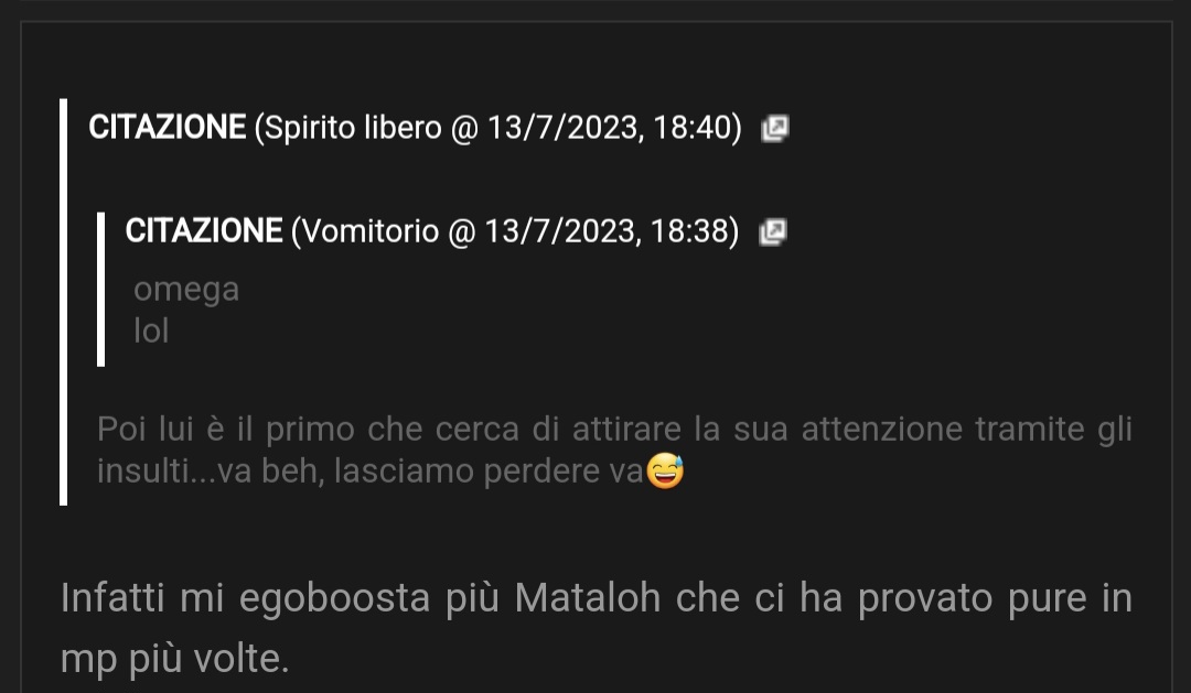 Ma io non mi risento. Figurati. Ma tu se sei tanto Alpha, perché ci provi in privato con lei? ![]() |