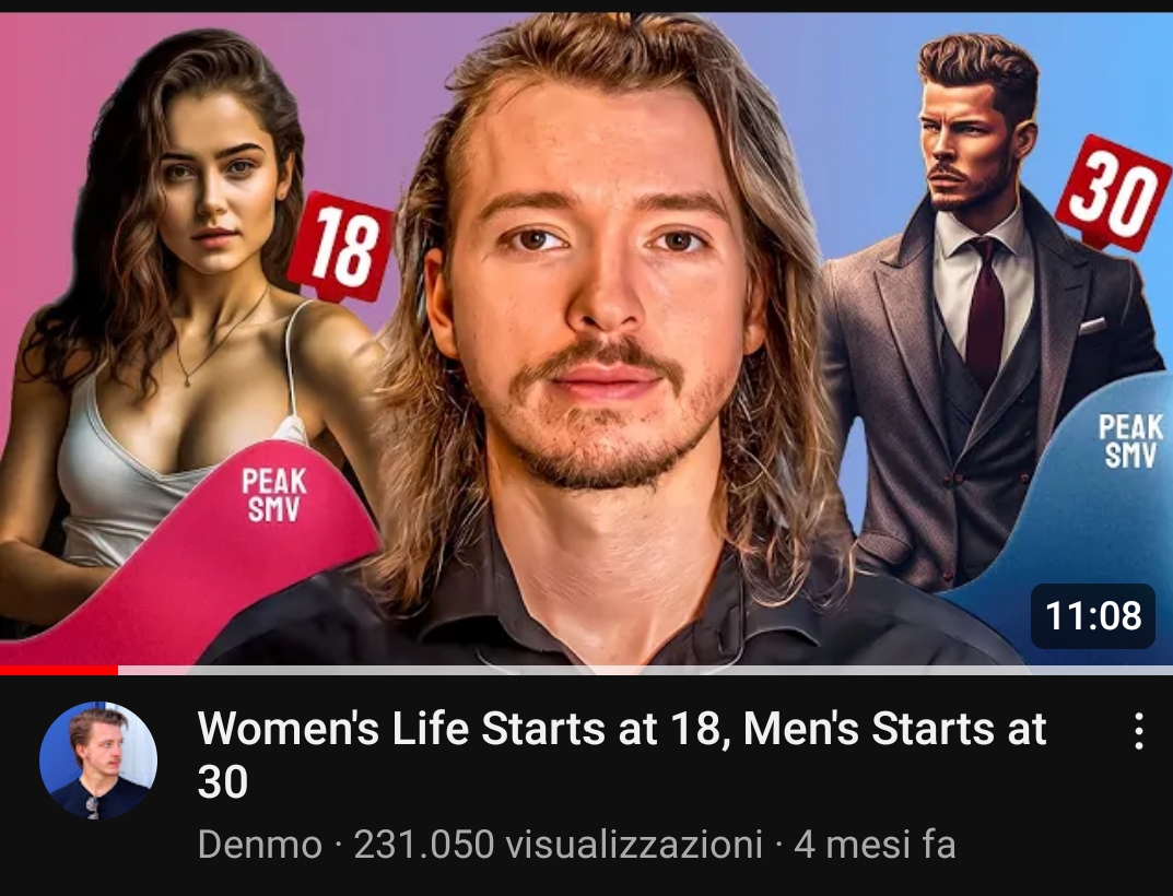 Semplicemente mentre lei pensava a farsi le foto e a fare festa con vari cazzi in bocca magari lui si faceva spazio nel mondo del lavoro e si creava una buona posizione, e lei poi a 30 inizia ad abbassare le pretese perché papà si fa vecchio e tra un po' schiatta Ma è esattamente qui l inghippo di tutto: perché una np passati i 30 pensa a un beta o a qualcuno che la foraggi quando, essendo adulta, dovrebbe solo camminare con le proprie gambe? Sono capace anch io di cazzeggiare fino a 35 anni e poi farmi dare dei soldi a fondo perduto. Quello non é vivere, é succhiare dalla società. |