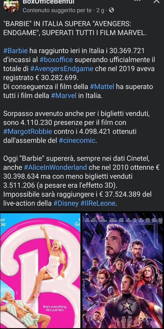 Cioè, quella porcata immonda del live action del Re Leone ha avuto tutto quell'incasso? Questo si' che mi sconvolge, altro che Barbie. |