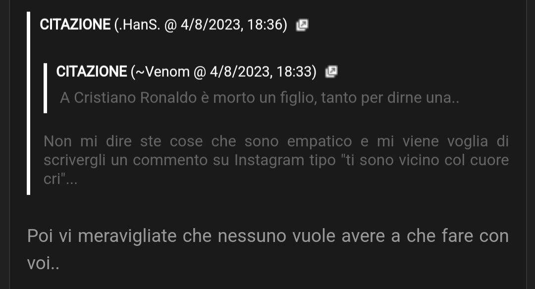 Cope. Evidentemente ha status essendo figlio di un attore fallito+inviato di striscia. Inoltre è pure capricorno e ho letto sul manuale di Franco che questa è la combinazione di status più letale per rimorchiare Ahahahahahahahahahahahahahahahahahahahahahah🤣🤣🤣🤣 |