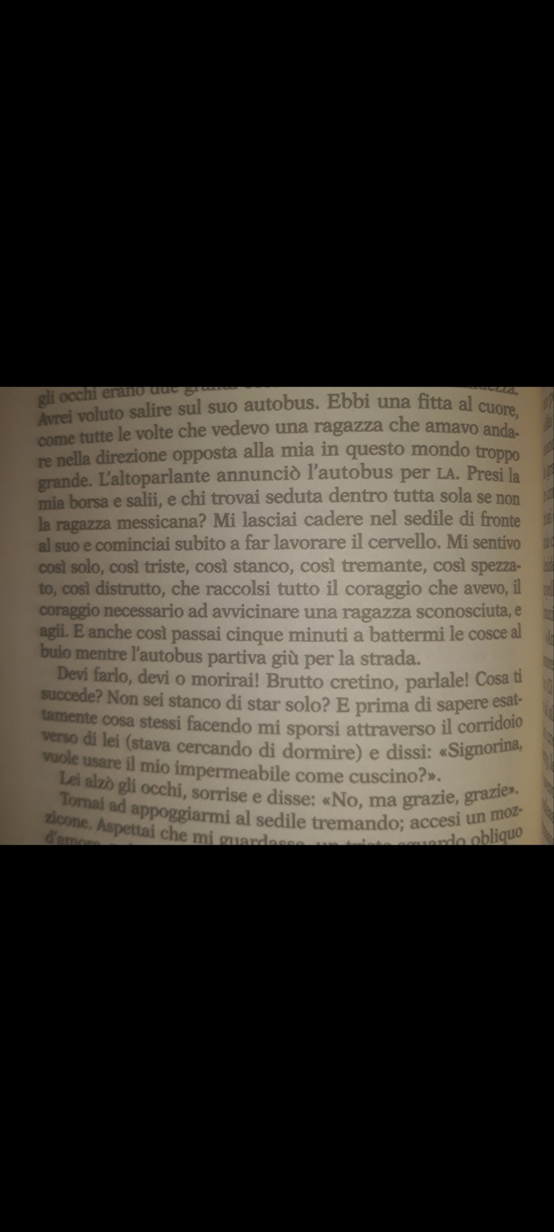 Oltre alla paura nella fase di approccio , io mi pongo onestamente mi ponevo queste domande , di cosa parlare ? Ma guarda quello è l'ultimo dei problemi, si parla di qualsiasi cazzata, chi sei che fai come mai da queste parti tanto se lei non ti rimbalza subito non è importante quello che dici ma tutto il resto, il tono della voce il non verbale. La cosa veramente difficile è l'impatto iniziale, innanzitutto trovare la forza di farlo, poi farlo nel modo giusto, se ti dà un qualche feedback positivo il più è fatto Otre all'approccio iniziale mi spaventano mi spaventavano i silenzi imbarazzanti , il fatto che alla mia età non so come ci si provi realmente , oltre a parlare del più o del meno del meteo dei migranti come si prova realmente ? |