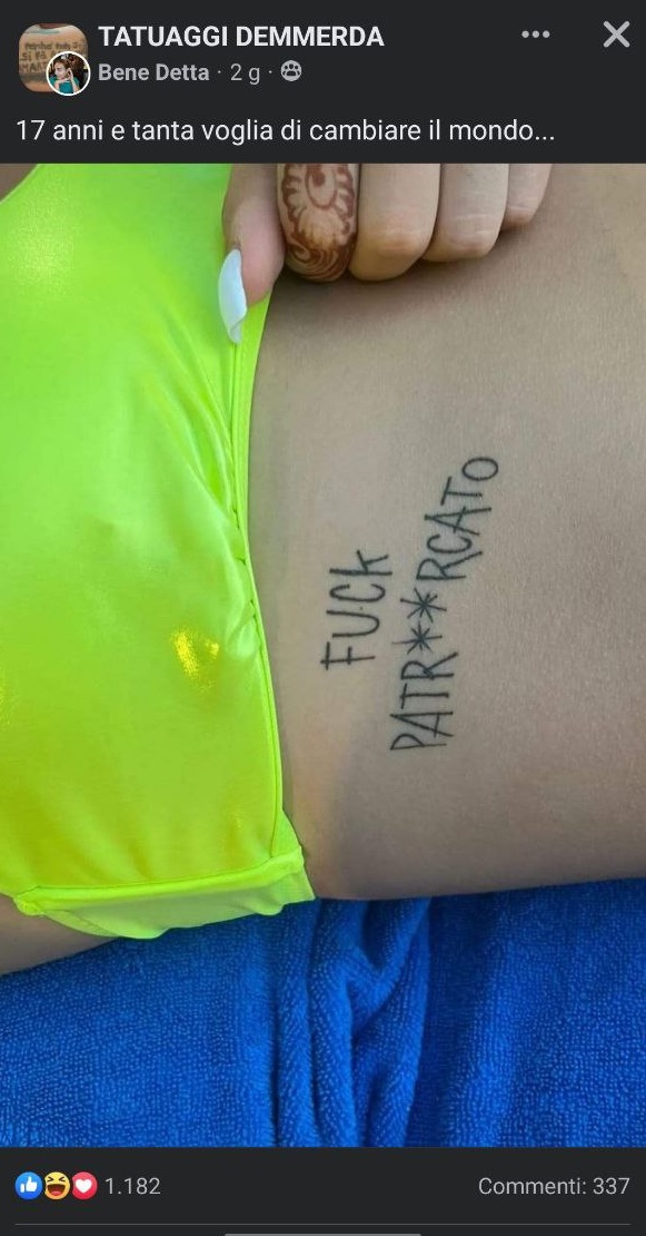 mia figlia sarebbe molto più bona di questa e comunque non si farebbe mai tatuaggi di merda del genere, secondo me è una tara genetica questa delle femministe... |